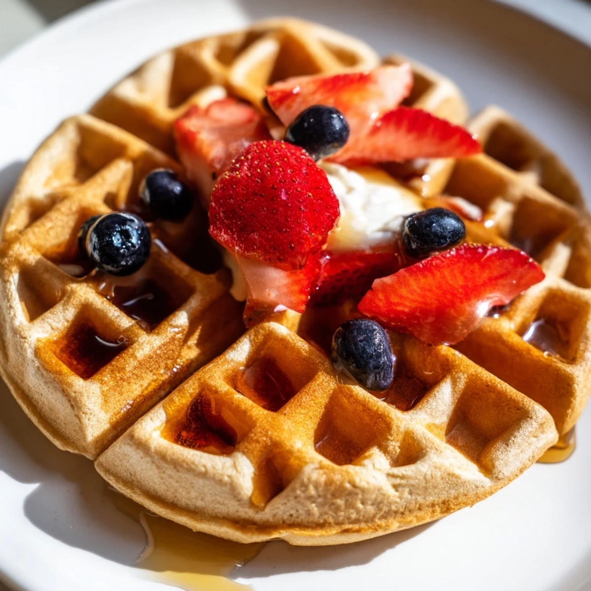 These waffles are incredibly versatile and pair beautifully with both sweet and savory toppings. The tang from the yogurt makes them particularly good with fresh fruit and a drizzle of honey, but they're substantial enough to stand up to richer toppings too.