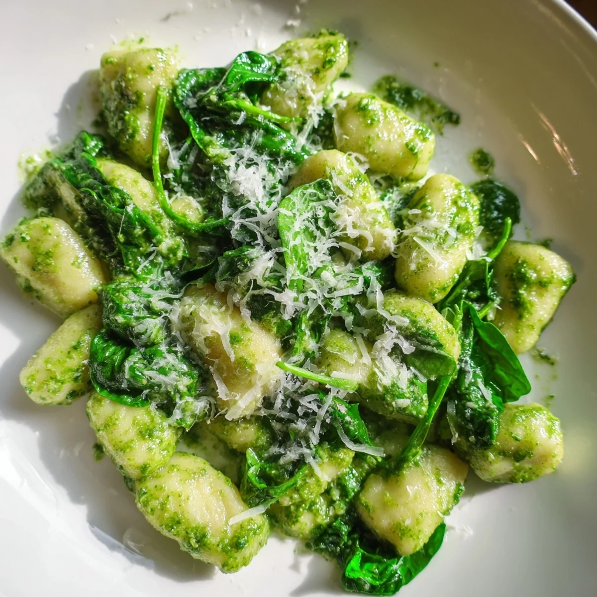 - Toss the cooked gnocchi with the spinach, then fold in the pesto until every piece is coated in that gorgeous green sauce